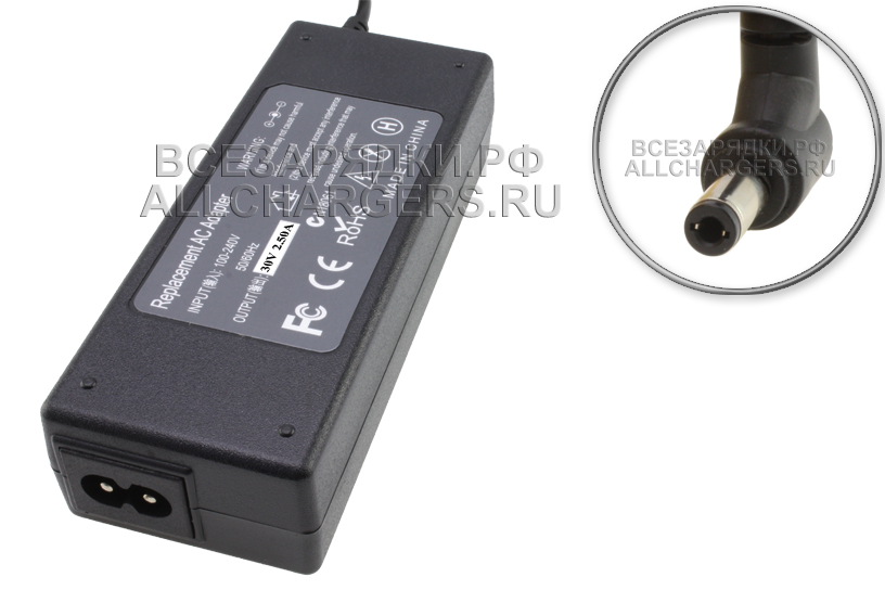 Адаптер (блок) питания 30V, 2.5A, 75W, 5.5mm x 2.5mm (AC300250C), для различного оборудования