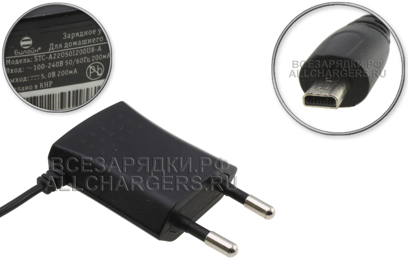 Зарядное устройство 5V, 0.2A, 8pin (STC-A22050i200U8-A), origin: Билайн, для мобильного (сотового) телефона БиЛайн A100; МТС 535; ZTE-G S213, ZTE-G R233