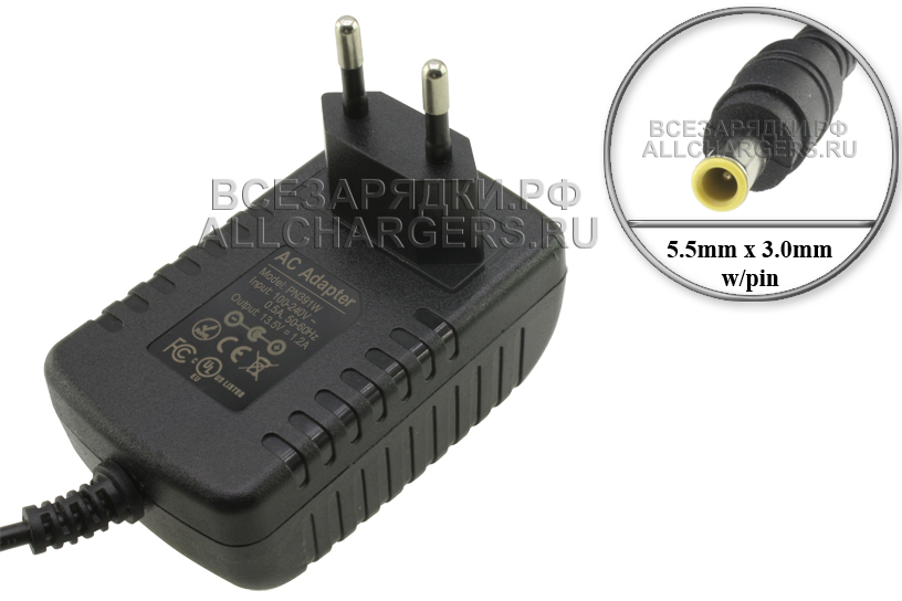 Адаптер (блок) питания 13.5V, 1.2A - 1.5A, 5.5mm x 3.0mm w/pin (A391VD, A392VD, EADP-16CB C, EADP-20CB C, A391FV), вилка, для сканера Epson V10, V33, V37, V100, V200, V300, V330, V350, V370 и др.