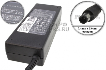 Адаптер (блок) питания 19.5V, 4.62A, 90W, 7.4mm x 5.0mm Octagon 1pin (PA-10, PA-1900-02DW), origin: Dell, зарядное устройство для ноутбука Dell Inspiron 1318, 1440, 1545, 1546, 1551, 1557, 1750; Dell XPS M1330