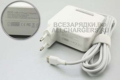 Адаптер (блок) питания 65W, USB Type-C, 20V, 3.25A; 20V, 3A; 15V, 3A; 12V, 3A; 9V, 3A; 5V, 3A; PowerDelivery (PD), встр. вилка, белый, зарядное устройство для ноутбука, планшета Acer, ASUS, Dell, HP, Lenovo, Xiaomi и др.