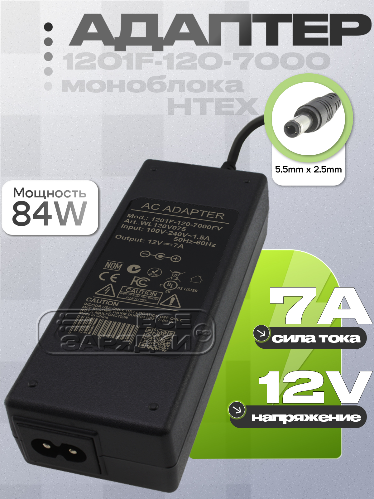 Адаптер (блок) питания 12V, 7A, 84W, 5.5mm x 2.5mm (1201F-120-7000, 1201F-120-7000FV), для моноблока HTEX S2400 и др.