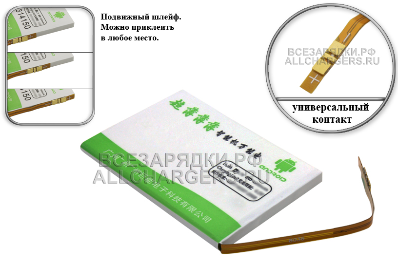 Аккумуляторная батарея 71mm x 42mm x 4.8mm, 2800mAh (C115), с универсальным контактом на шлейфе, для различных мобильных телефонов