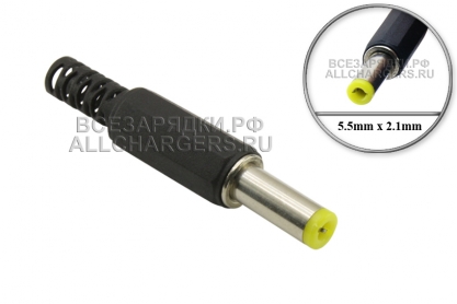 Разъем питания (DC) 5.5mm x 2.1mm, штекер (male), пружинный контакт, для монтажа на кабель, под пайку, для адаптера (блока) питания, зарядного устройства и др.