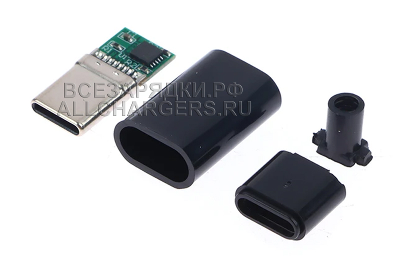 Переходник, переключатель питания (триггер) USB-C (USB 3.1 Type C) Power Delivery (PD), штекер (male) - DC 19V - 20V, с корпусом