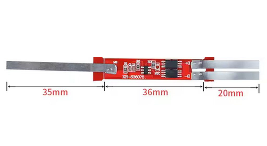 Плата контроля заряда (BMS), Li-Ion, 2S, 5A, схема монтажа - продольная, T-канал (пустой), с пластинами