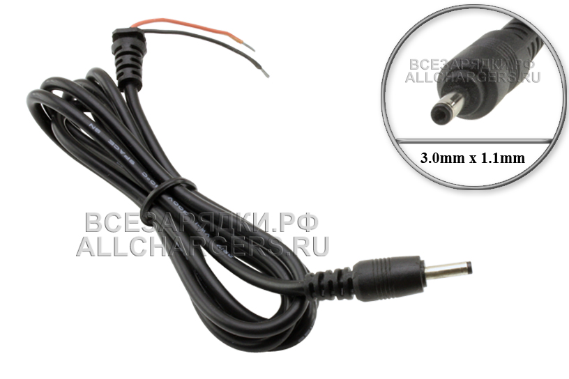 Кабель со штекером 3.0mm x 1.1mm, прямой штекер, 1m, 0.5mm2, для адаптера (блока) питания, зарядного устройства планшета Acer Iconia, Huawei MediaPad, ультрабука ASUS Zenbook UX21E, UX31E, Samsung NP305, NP350, NP900, автоэлектроники и др.