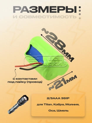 Аккумуляторная батарея Ni-MH типа 2/3AAA 3S1P, 3.6V, 300mAh, профиль - треугольник , с выводами под пайку (провод), для электрошокера Titan, Кобра, Молния, Оса, Шмель и др.