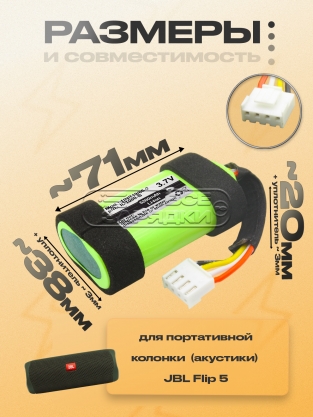 Аккумуляторная батарея (1INR19/66-2, ID1060-B), 3.7V, для портативной колонки (акустики) JBL Flip 5