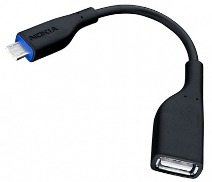 Переходник OTG, micro-USB - USB-A (female), кабель (гибкий), Nokia CA-157, для подключения различных USB устройств (в т.ч. USB накопителя, клавиатуры, мыши) к телефону Nokia 600, 700, 701, 702, C3, C3-01, C6-01, C7, C7-00, E7-00, N8, X3, и др.