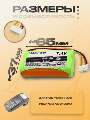 Аккумуляторная батарея (LARGE18650, ABT 8210, ABT 8210LU) 7.4V, Li-Ion, 5pin, усил. емк., для POS терминала NewPOS NEW 8210