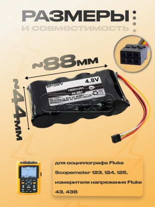 Аккумуляторная батарея (B11483, BP120MH, BP120FV), Ni-MH, 4.8V, 5pin, станд. емк., для осциллографа Fluke Scopemeter 123, 124, 125; измерителя напряжения Fluke 43, 43B