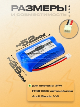 Аккумулятор (батарея) TLI-1550A/1B/VW1 для системы ЭРА ГЛОНАСС автомобилей Audi, Skoda, VW