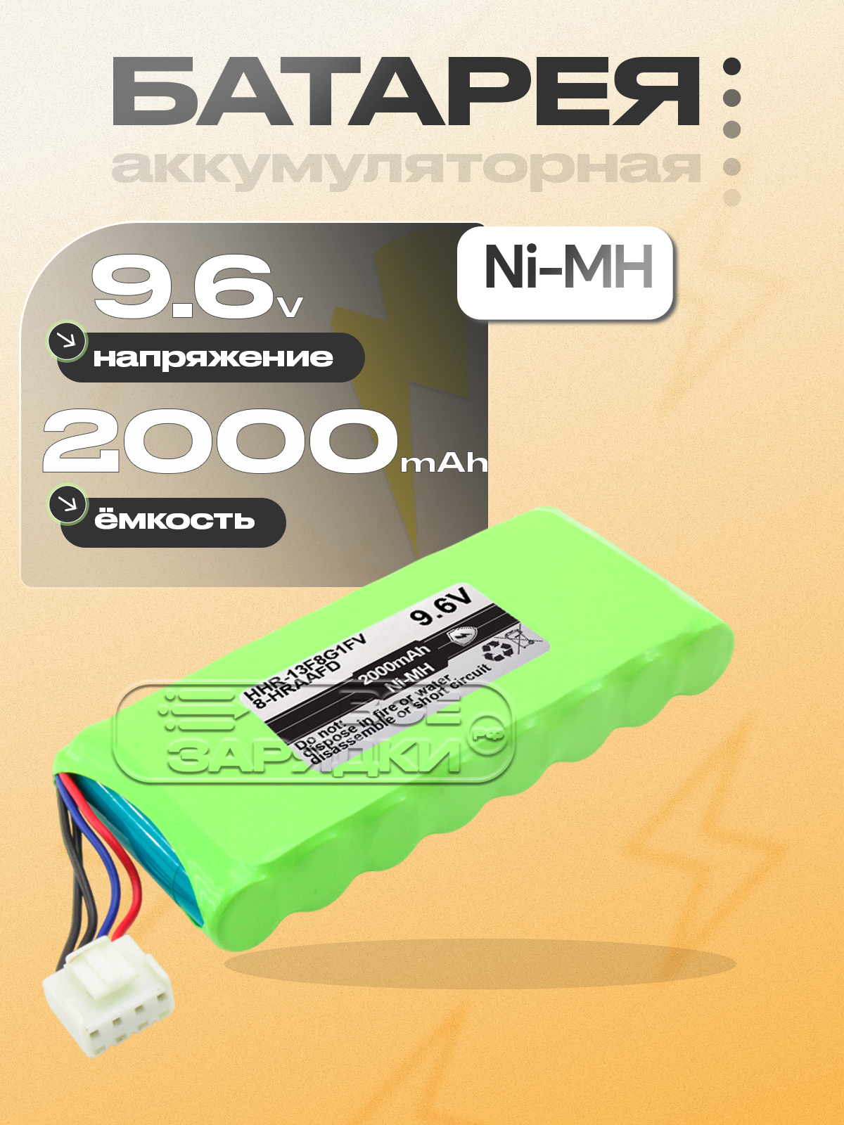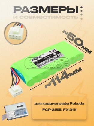 Аккумуляторная батарея (8-HRAAFD, HHR-13F8G1, HHR-13F8G1FV), 9.6V, Ni-MH, для кардиографа Fukuda FCP-2155, FX-2111