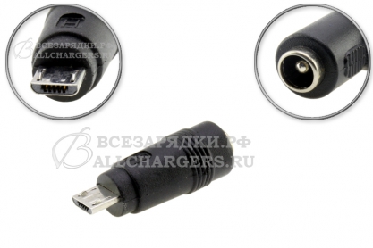Переходник 5.5mm x 2.5mm (2.1mm) - micro-USB, прямой, адаптер (жесткий), для блока питания, зарядного устройства телефона, планшета, навигатора, видеорегистратора и др. оборудования