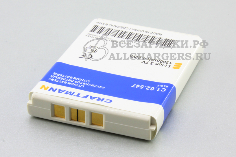 Аккумуляторная батарея (BLC-1, BLC-2, BMC-3), 1300mAh, Craftmann, для мобильного телефона Nokia 1220, 1221, 1260, 1261, 2260, 3310, 3320, 3330, 3350, 3360, 3390, 3395, 3410, 3510, 3520, 3595, 3810, 5510, 6010, 6650, 6651, 6800, 6810