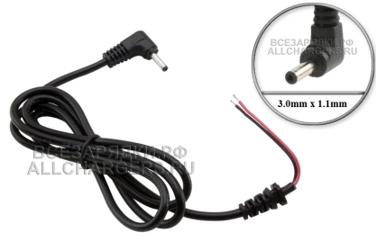Кабель со штекером 3.0mm x 1.1mm, угловой штекер, 1m, 0.5mm2, для адаптера (блока) питания, зарядного устройства планшета Acer Iconia, Huawei MediaPad, ультрабука ASUS Zenbook UX21E, UX31E, Samsung NP305, NP350, NP900, автоэлектроники и др.