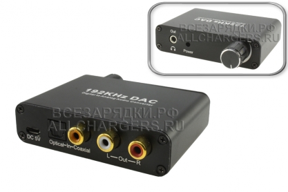 Переходник (адаптер, конвертер) Toslink (оптический) и SPDIF RCA (коаксиальный) - стерео RCA (тюльпаны) и Jack 3.5mm, с регулировкой громкости, для подключения акустики (наушники и колонки) с аналоговым входом к цифровому аудио выходу