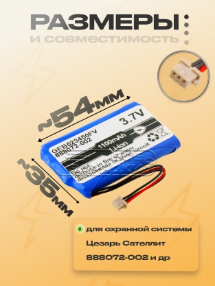 Аккумуляторная батарея (BAK-523450AHJ, GEB523450A, GEB523450FV), для охранной системы Цезарь Сателлит 888072-002 и др.