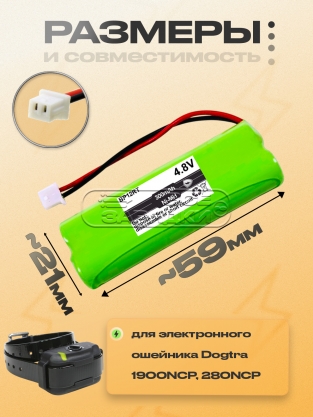 Аккумуляторная батарея (BP12RT), 4.8V, Ni-MH, для ошейника Dogtra 1900NCP, 280NCP