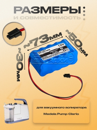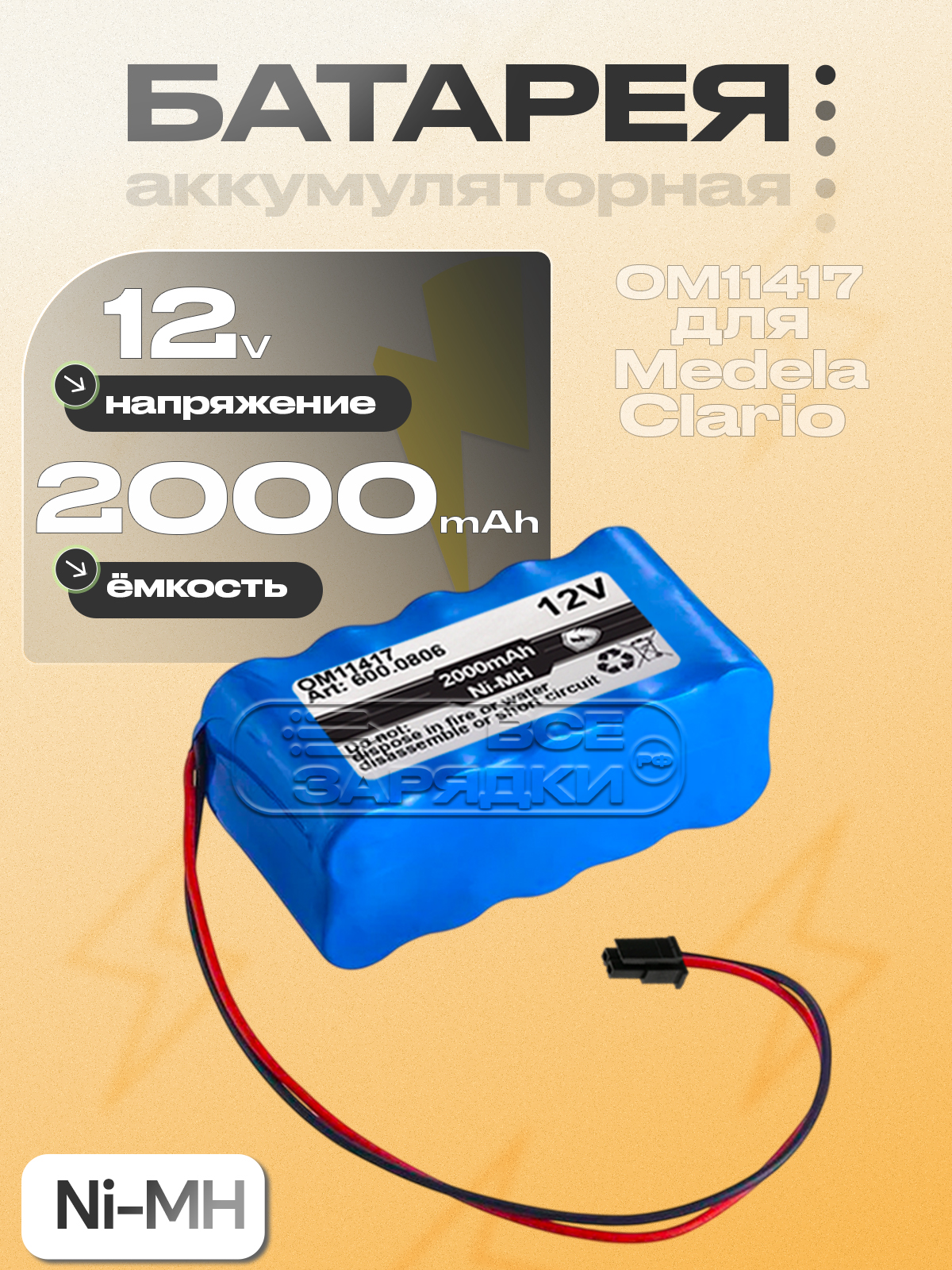 Аккумуляторная батарея (OM11417, 074.0005, 600.0806), 12V, Ni-MH, для вакуумного аспиратора Medela Pump Clario