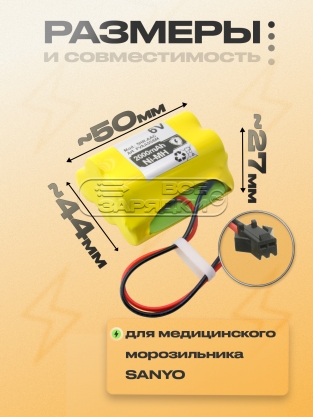 Аккумуляторная батарея (5HR-AAC) для морозильника SANYO MDF-137, MDF-C8V, MDF-U333, MDF-U3386S, MDF-U537, MDF-U537D